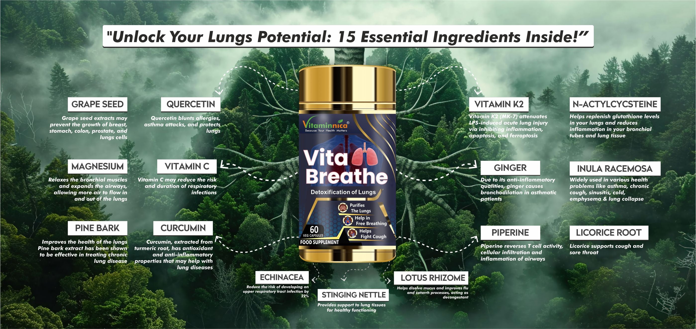 Vitaminnica Vita Breathe: Detoxify Lungs Health -60 Capsules| Pack of 1